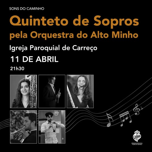 A igreja Paroquial de Carreço recebe este sábado pelas nove e meia da noite, mais uma edição do concerto, Sons do Caminho, onde se vai apresentar uma noite especial de música com o Quinteto de Sopros da Orquestra do Alto Minho, que promete um concerto único, repleto de harmonia e talento.